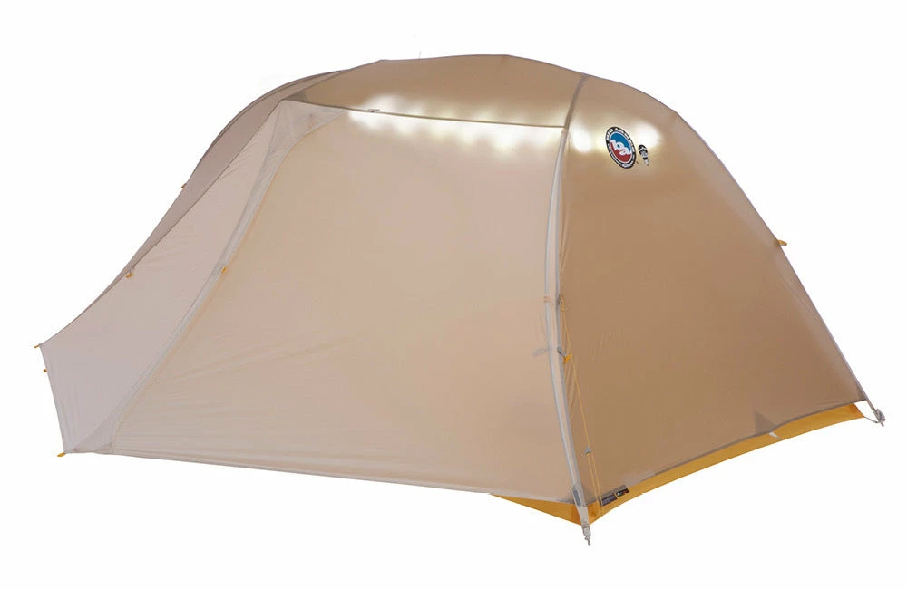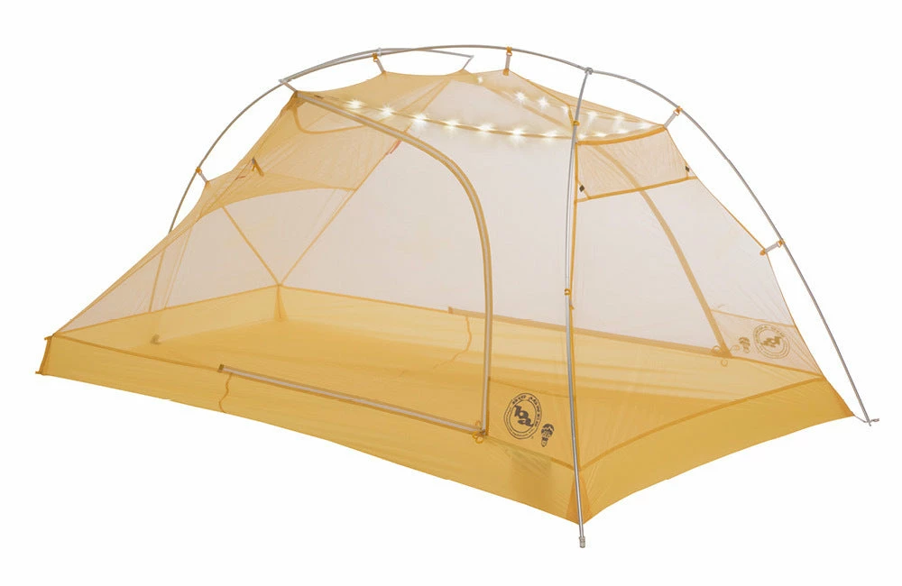 The Big Agnes Tiger Wall UL2 mtnGLOยฎ tent is your ultralight backcountry 2-person dream tent, now redesigned using solution-dyed fabric that is highly resistant to UV fade and drastically reduces energy consumption and water use during manufacturing, a process that is better for the environment and improves the quality of the tent fabric. Incredibly lightweight features include the comfort of two doors and two vestibules, a single-pole design that creates a spacious footprint, and the added bonus of ambient mtnGLOยฎ tent lights.