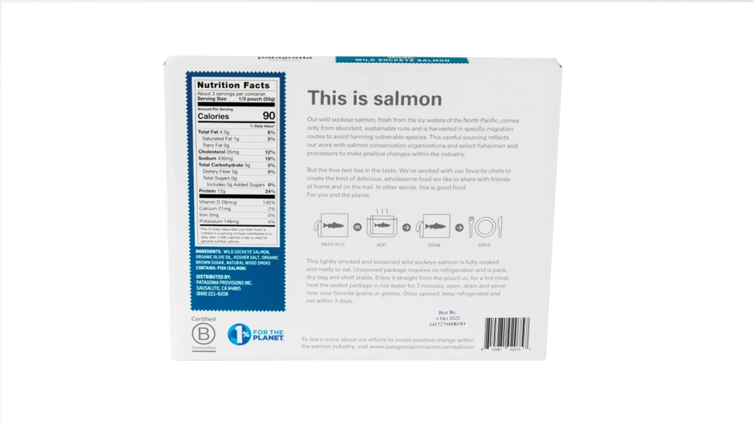 Harvested from the icy waters of the North Pacific, in responsibly managed, place-based fisheries. Brined and lightly smoked to highlight the fine flavor and firm texture for which sockeye are prized, this is salmon you can enjoy on every level. One 6-oz portion; fully cooked. Shelf stable until opened.