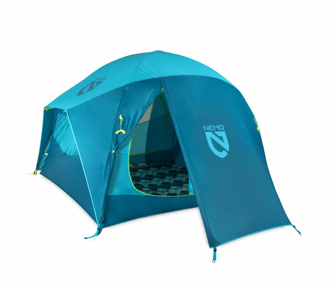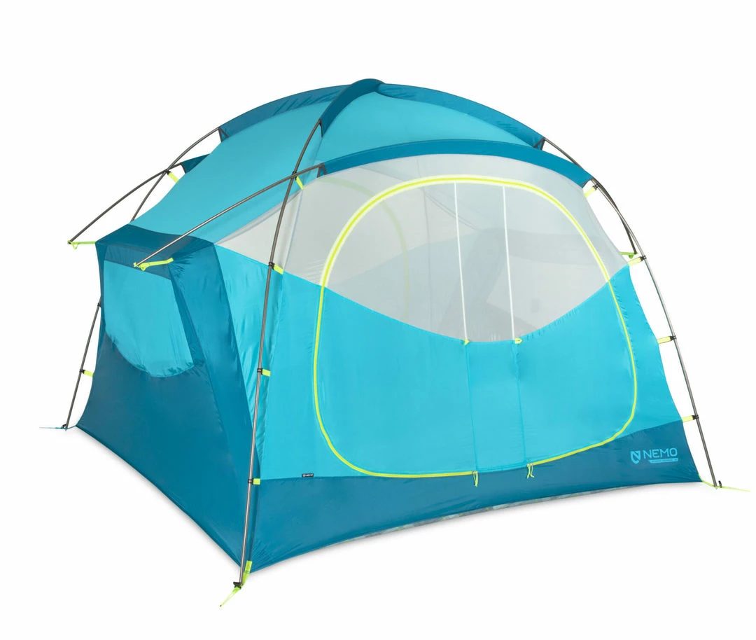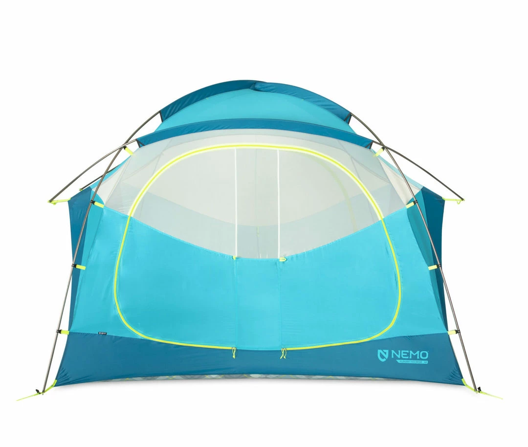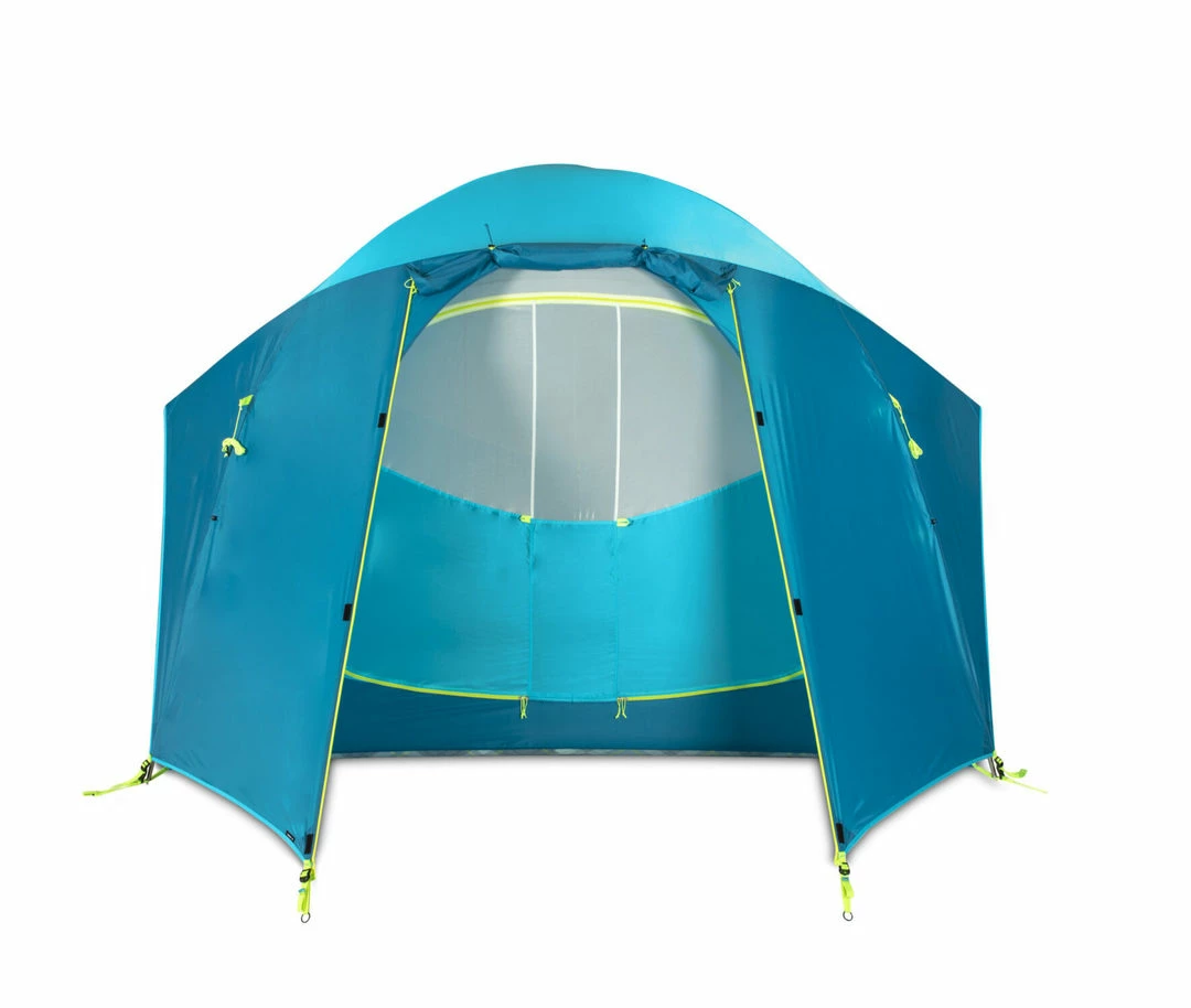 With a spacious standing-height design, simple setup, and vibrant colors, the Aurora Highrise tent adds a dose of joy to every family camping adventure. Steep sidewalls provide massive interior volume, while large rain-protected windows add ventilation and great views. Two large doors and vestibules offer easy entry and plenty of room for keeping camping essentials organized and out of the weather. This versatile and inviting home under the stars features high-quality materials and is ideal for escaping with the whole family or simply spreading out as a couple.