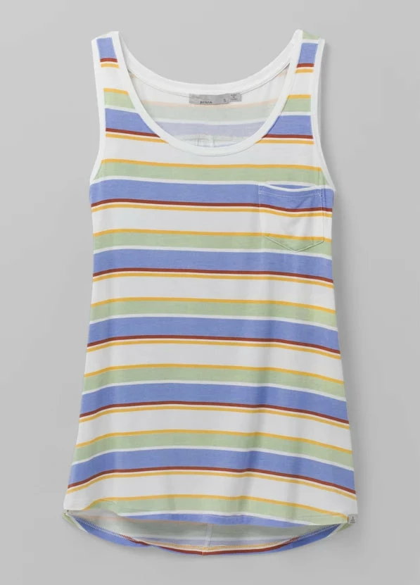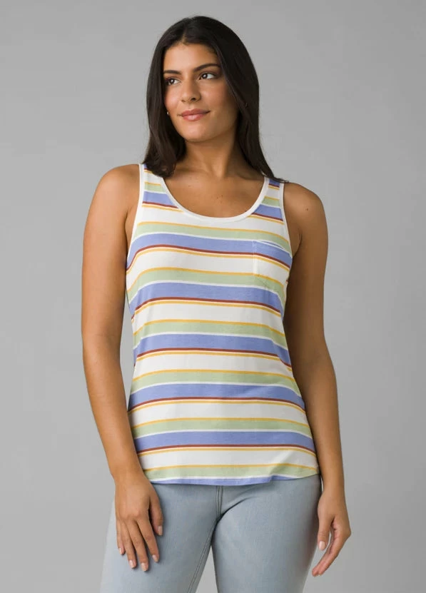 - Sleeveless scoop neck pocket tank silhouette with back seam details