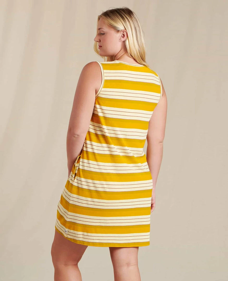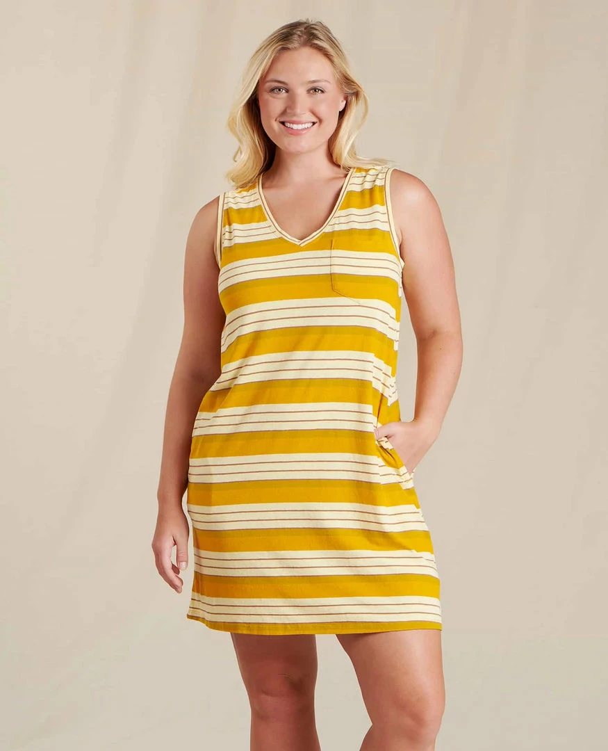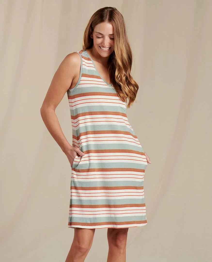 Low on fuss but high on fun, this tank dress will get you where you need to go with swagger to spare. Bold retro stripes meet the sustainable dream team of hemp and organic cotton, and hand pockets give you space to stash essentials. Add a ball cap, some sneaks and congratulationsโthe perfect outfit has been born.